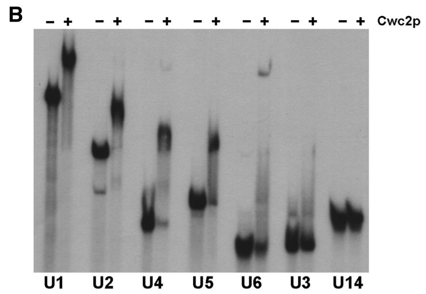 assay using non-denaturing PAGE with snRNA and Cwc2